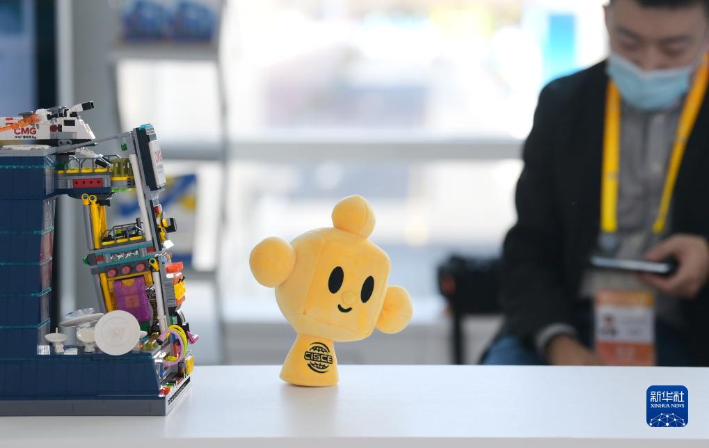 11月29日,鏈博會媒體工作區的一處櫃&上擺放着“鏈氪”毛絨玩具。