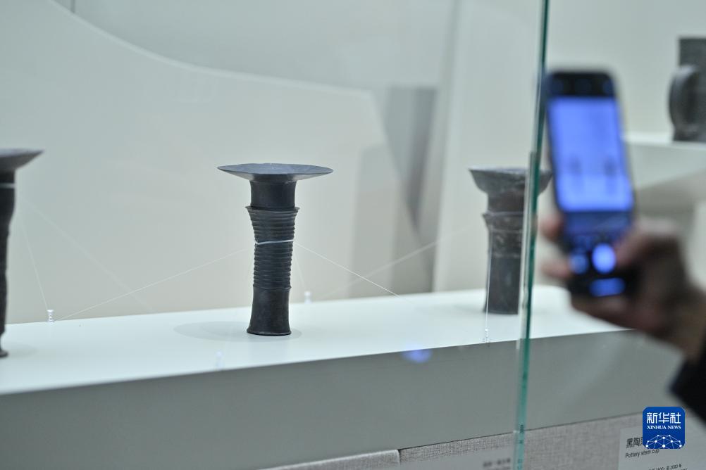 11月29日,參觀者在清華大學藝術博物館拍攝龍山文化時期的蛋殼黑陶杯(國家一級文物)。