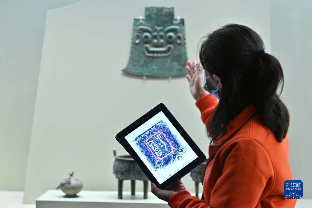 11月29日,講解員在清華大學藝術博物館介紹山東博物館鎮館之寶商代亞醜鉞(國家一級文物)。