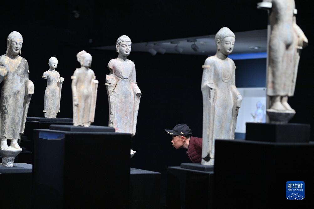 11月29日,參觀者在清華大學藝術博物館觀看北齊時期佛造像。