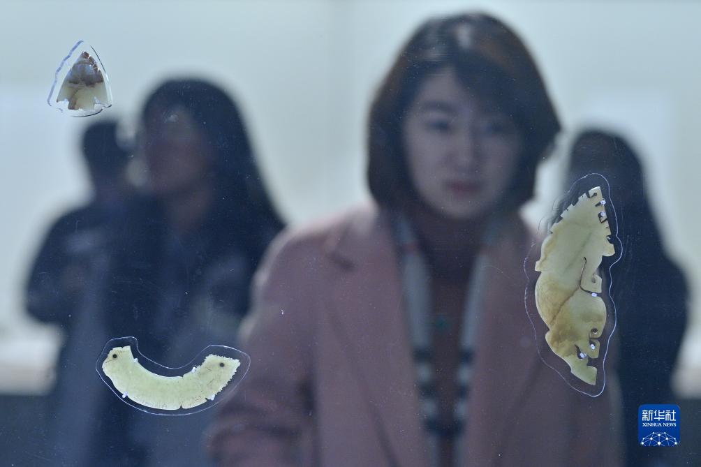 11月29日,參觀者在清華大學藝術博物館觀看古代玉器。