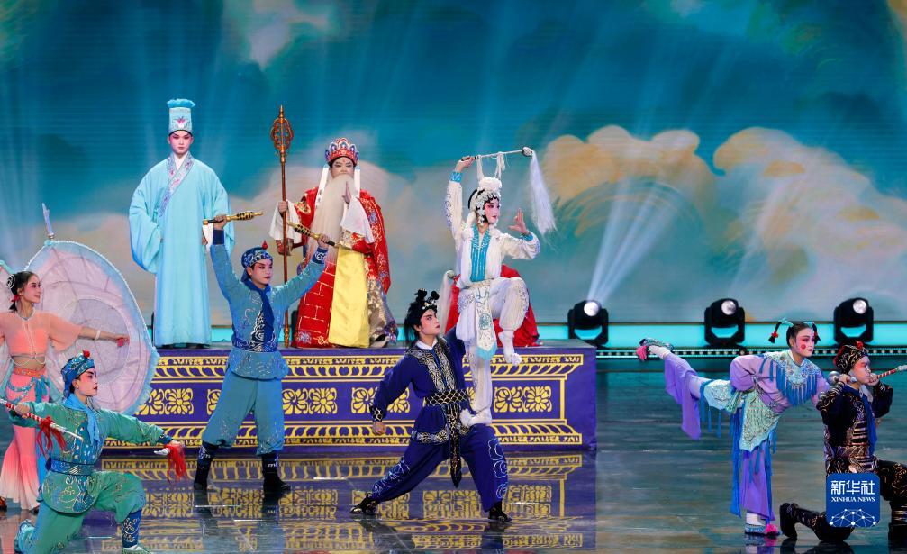 11月29日,演員在表演川劇匯演劇目《白蛇傳》選段。