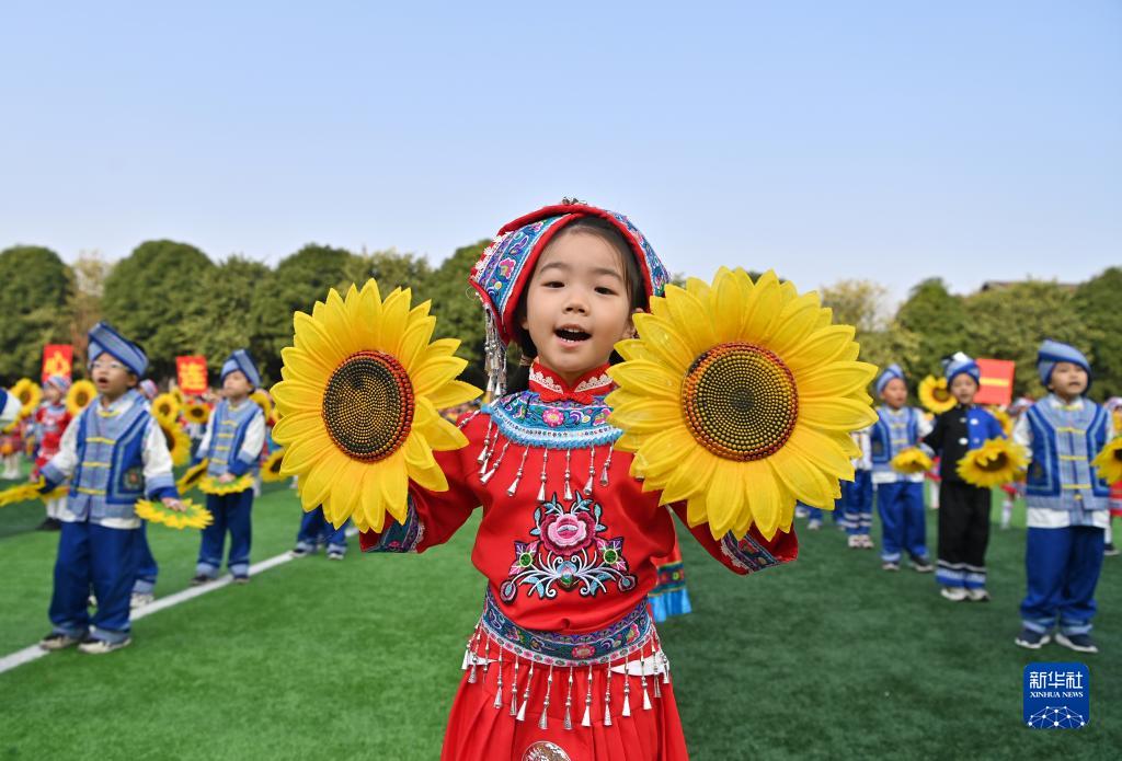 當日,廣西南寧市濱湖路小學舉行主題為“逐夢新時代 健體向未來”的體育文化節。開幕式上,孩子們表演民族歌舞,跳腰鼓舞,展示陽光運動團體操,共度歡樂時光。