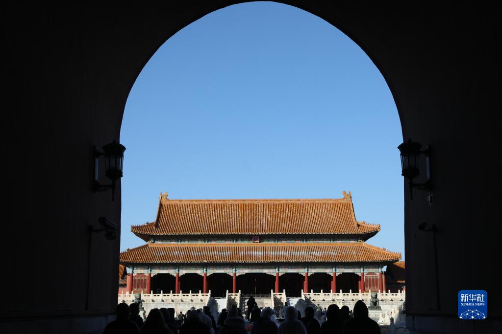 初冬時節,許多游客前來感受北京故宮博物院別樣韻味。
