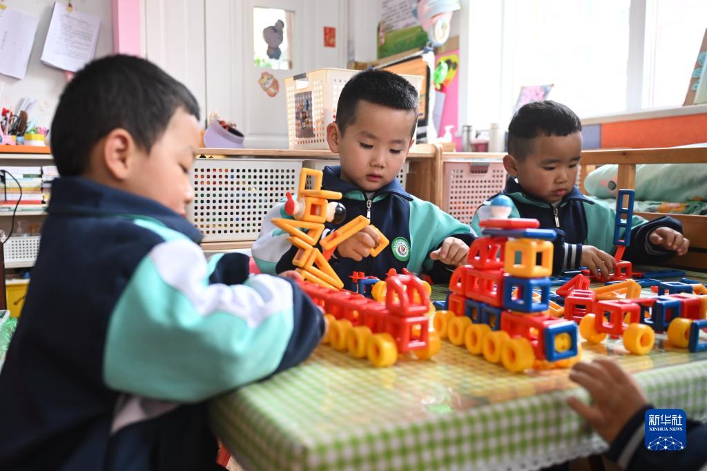 11月29日,青海省西寧市湟源縣大華鎮池漢新村幼兒園的小朋友在上手工製作課。