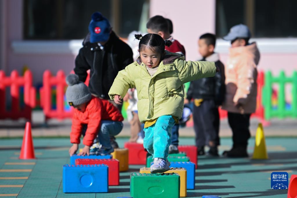 11月29日,青海省西寧市湟源縣幼兒園的小朋友在上戶外活動課。