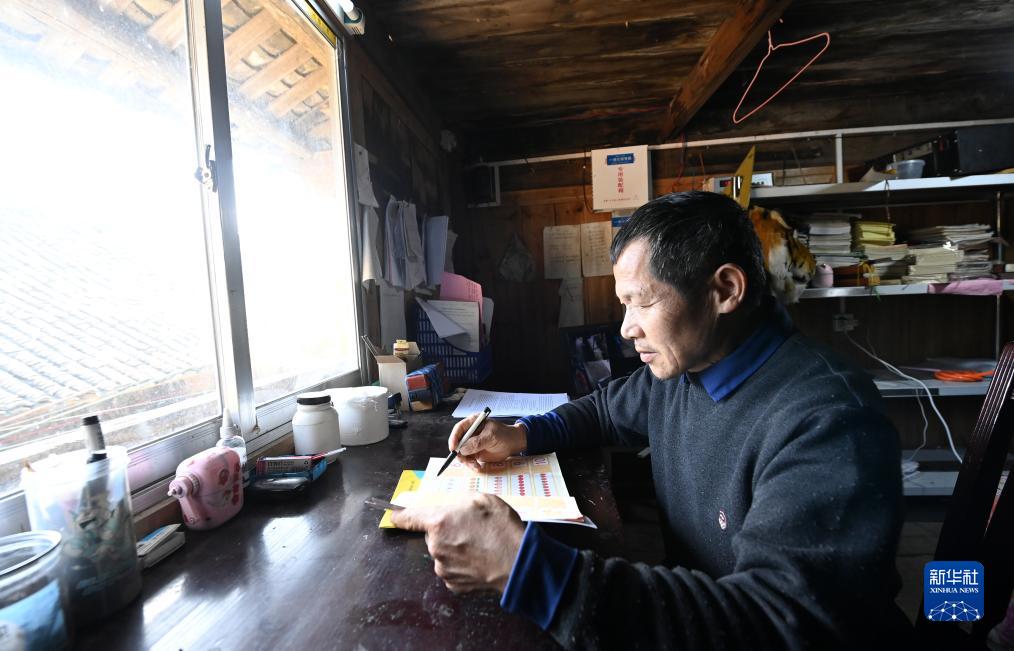 11月29日,廣西龍勝各族自治縣龍脊鎮滿田小學的潘從漢老師在備課。