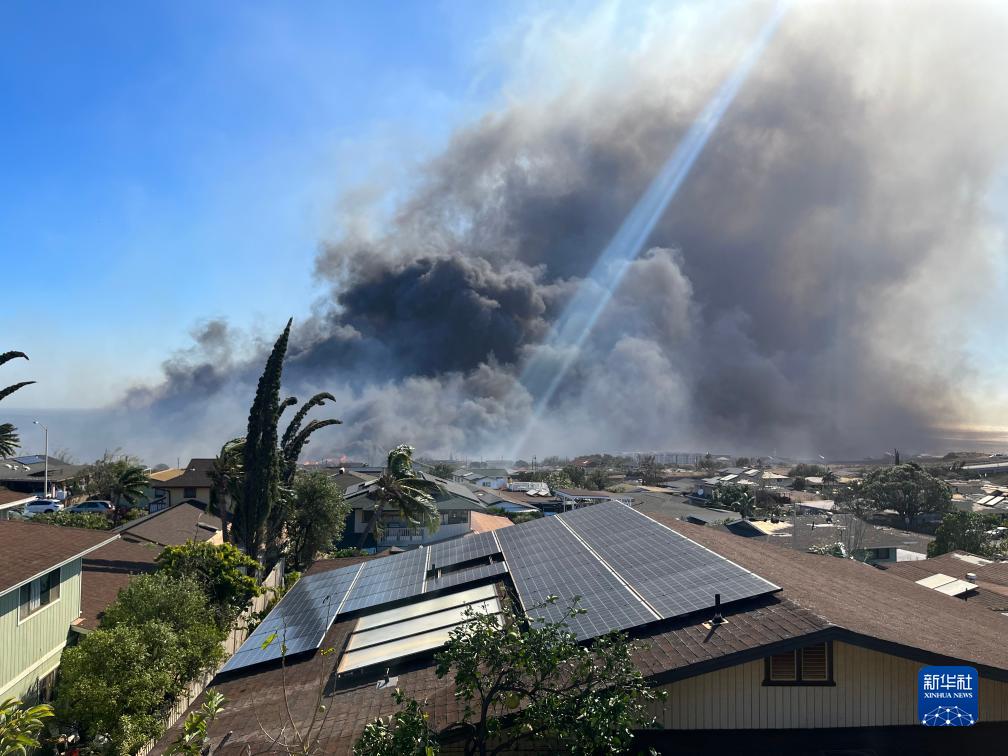 這張2023年8月8日拍攝的照片顯示,美國夏威夷州毛伊縣拉海納鎮上空濃煙滾滾。受颶風帶來的強風以及環境乾旱的影響,當天發生的這場野火蔓延十分迅速。根據毛伊縣警方10月13日發布的數據,這場野火共造成98人死亡,7人失蹤,被焚燬的建築物超過2000棟。這是美國一個多世紀以來致死人數最多的野火。