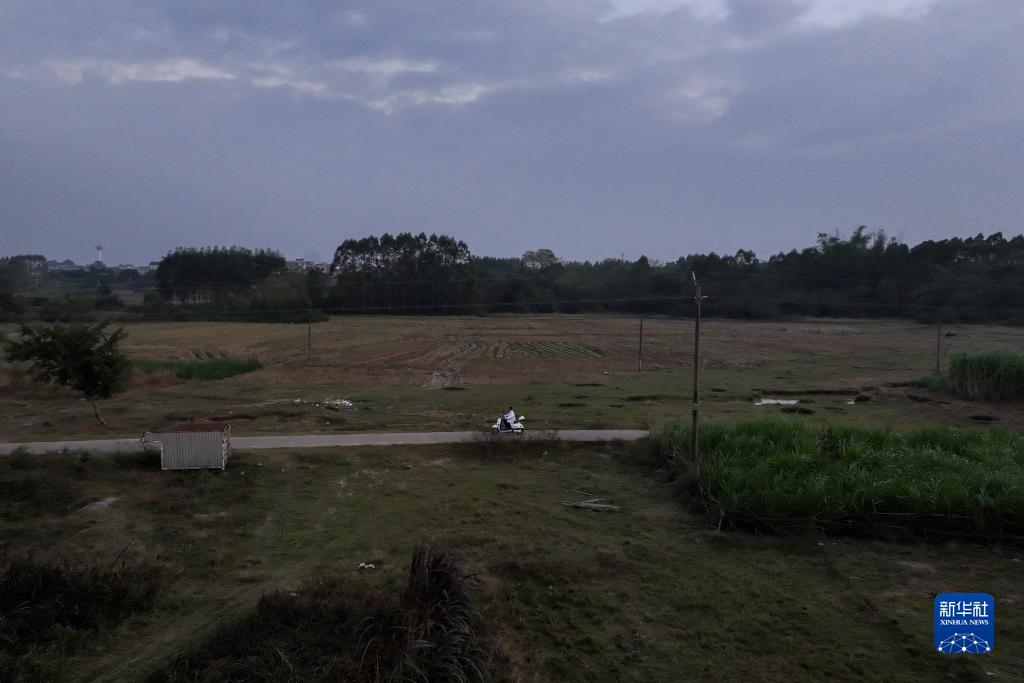 11月29日傍晚,黃增亮出診結束後,騎行在返程路上(無人機照片)。