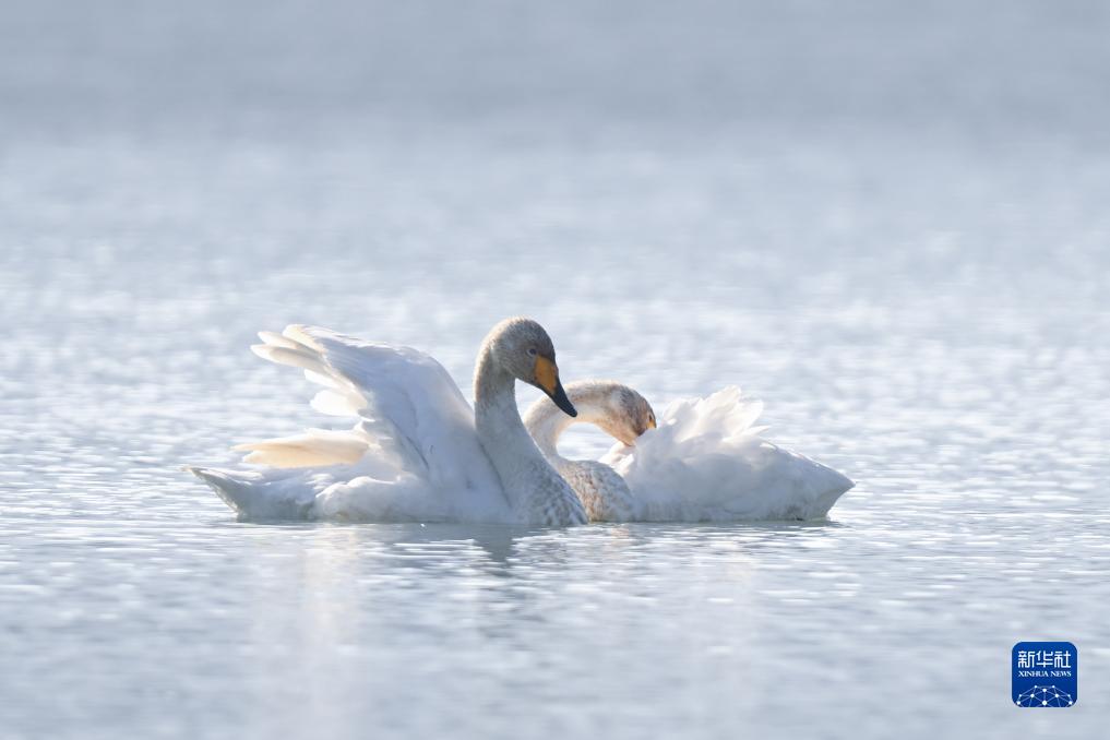 近日,青海省海東市化隆回族自治縣群科鎮的黃河上迎來近百隻越冬的大天鵝,為冬日高原增添生機。近年來,青海省加大力度保護治理境內黃河流域,改善當地生態環境,為越冬候鳥提供良好棲息地。