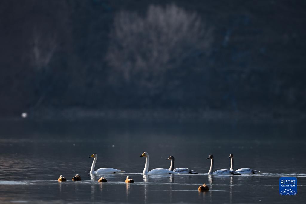 近日,青海省海東市化隆回族自治縣群科鎮的黃河上迎來近百隻越冬的大天鵝,為冬日高原增添生機。近年來,青海省加大力度保護治理境內黃河流域,改善當地生態環境,為越冬候鳥提供良好棲息地。