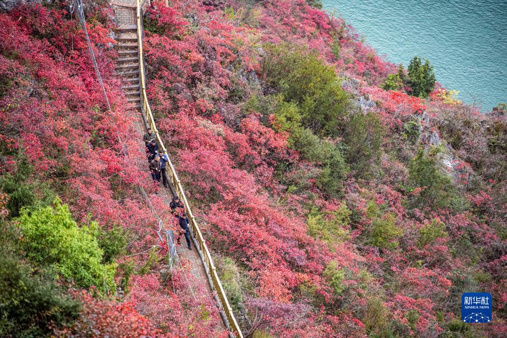 初冬時節,長江三峽重慶市巫山縣水域兩岸色彩斑斕,紅葉似火,美如畫卷。