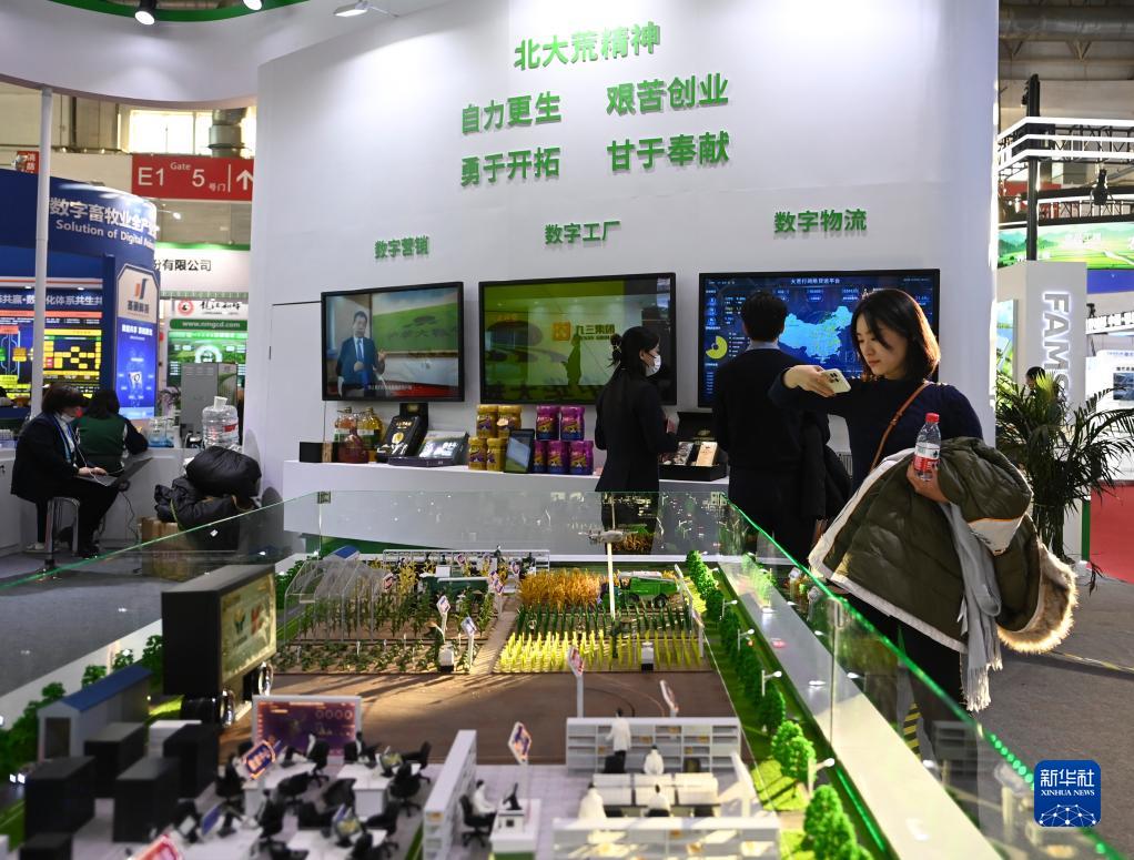 11月30日,參觀者在鏈博會綠色農業鏈展區北大荒集團展&前觀看智慧育種解決方案。