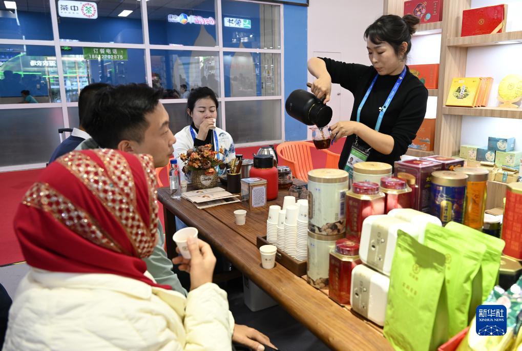 11月30日,在鏈博會綠色農業鏈展區,參觀者們在中糧集團展&前品茶。