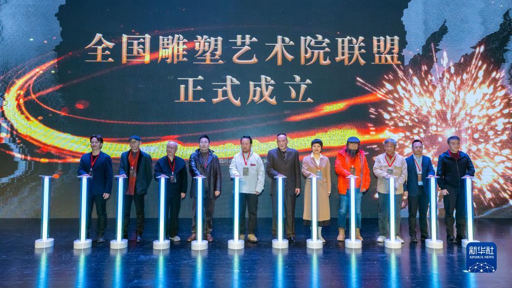 11月30日,在首屆天府雕塑展開幕式上,國內雕塑藝術院代表參加全國雕塑藝術院聯盟成立活動。