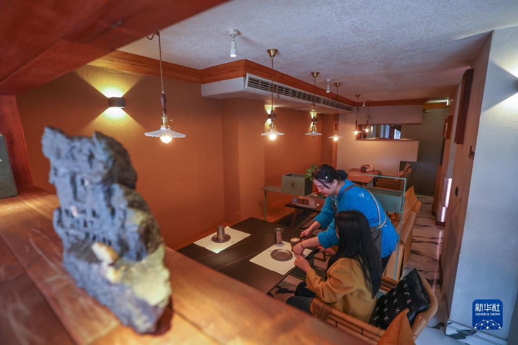 11月30日,在青田縣城的誠磊24小時咖啡館裏,工作人員為顧客送上製作好的咖啡。