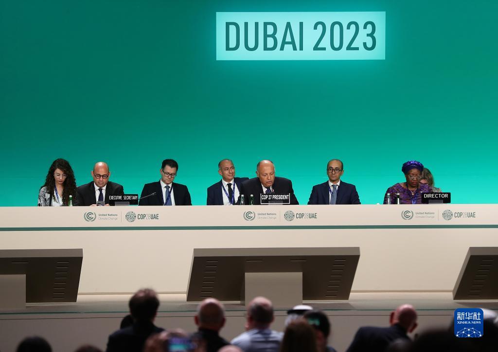 11月30日,在阿聯酋迪拜拍攝的聯合國氣候變化迪拜大會開幕現場,埃及外長兼COP27主席舒凱里(前排中)主持會議。