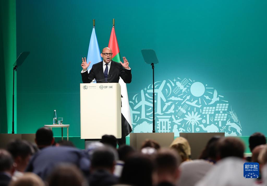 11月30日,在阿聯酋迪拜的聯合國氣候變化迪拜大會開幕現場,《聯合國氣候變化框架公約》秘書處執行秘書西蒙·斯蒂爾發言。