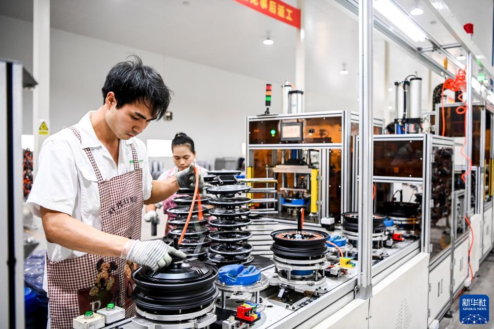就業群眾在貴港市港北區一家企業內裝配電機産品(9月27日攝)。