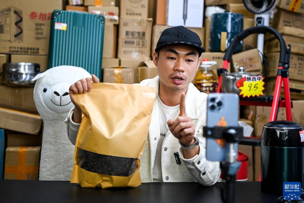 11月30日,在貴港市港北區一處創業孵化園區,一個創業團隊的主播在進行直播帶貨。