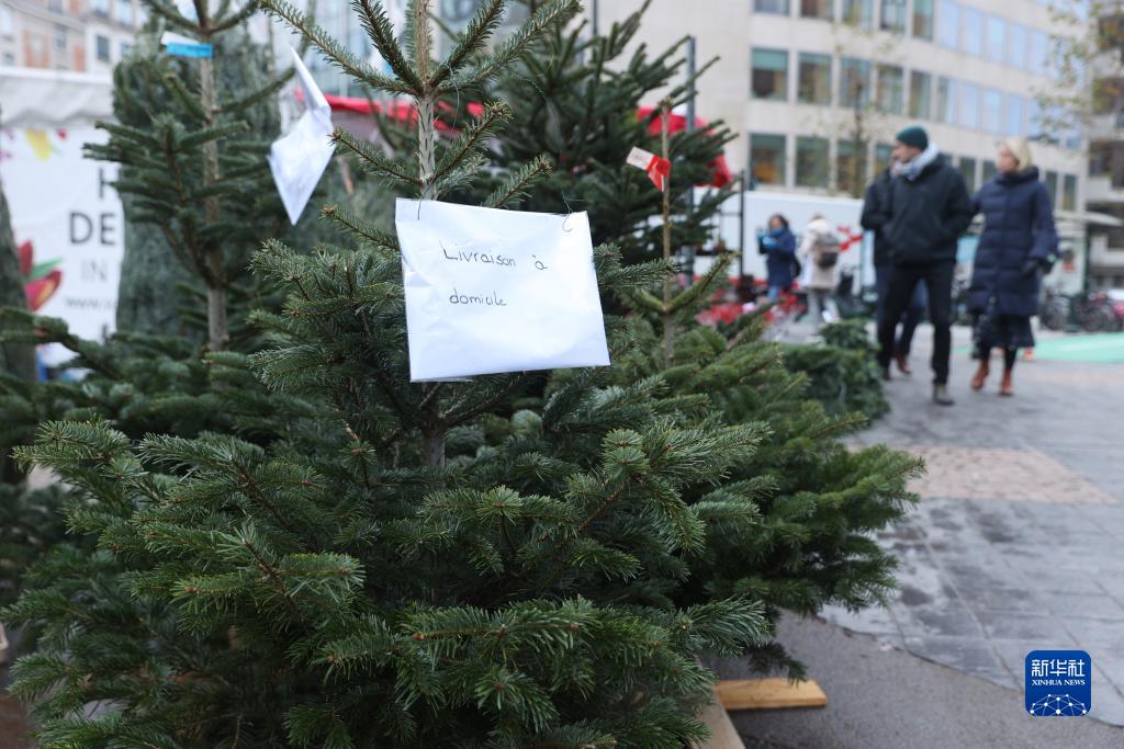 這是11月30日在比利時布魯塞爾街頭拍攝的幾棵待售的聖誕樹。