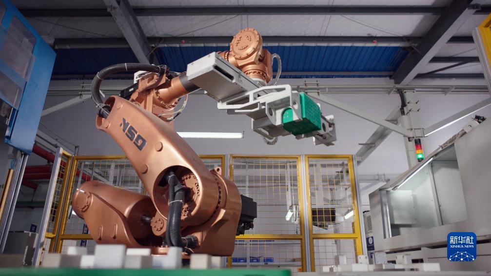 在中國(廣西)自由貿易試驗區欽州港片區的一家新能源電池材料企業,機器人在車間作業(11月29日攝)。