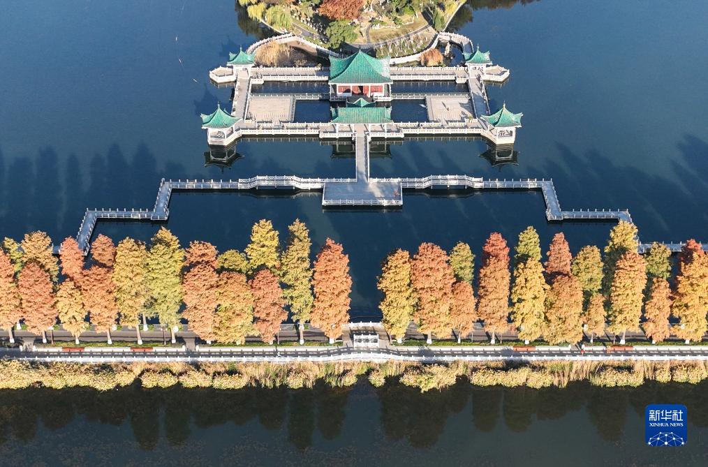 初冬季節,武漢東湖水天相映,色彩斑斕。