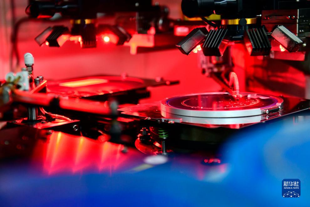 11月30日在巨野縣新一代信息技術産業園拍攝的生産直顯芯片的設備。