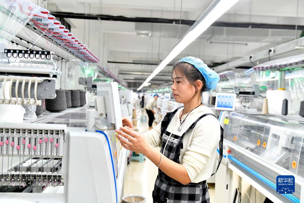 11月30日,在巨野萬麗服飾有限公司,工作人員在織機前忙碌。