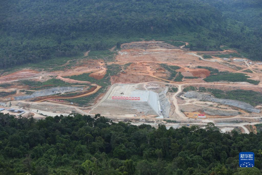 這是11月30日在柬埔寨戈公省特莫邦縣拍攝的上達岱水電站截流現場。