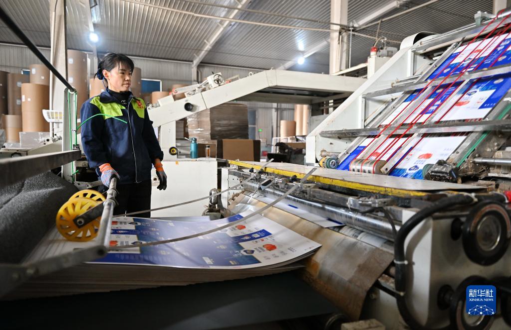12月1日,位於望都縣的河北和瑞包裝有限公司工人在包裝紙盒印刷線上工作。