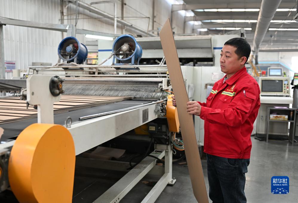 12月1日,位於望都縣的河北和瑞包裝有限公司工人在檢查包裝紙板質量。