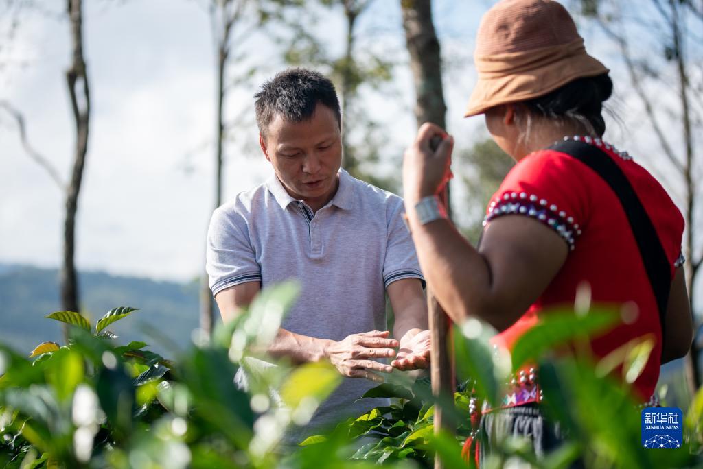 農藝師王萬東在位於雲南省普洱市孟連縣的雲南天宇咖啡合作社指導咖農種植咖啡(2022年8月攝)。