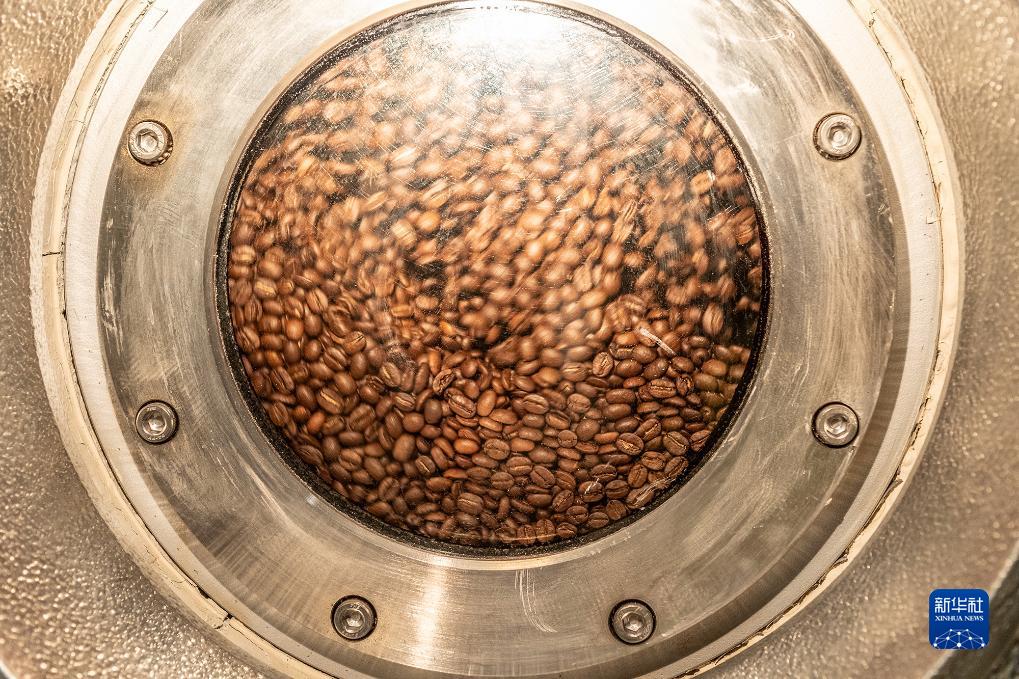 9月19日,在位於江蘇昆山的星巴克中國咖啡創新産業園綠色烘焙工廠,咖啡豆在機器裏烘焙。