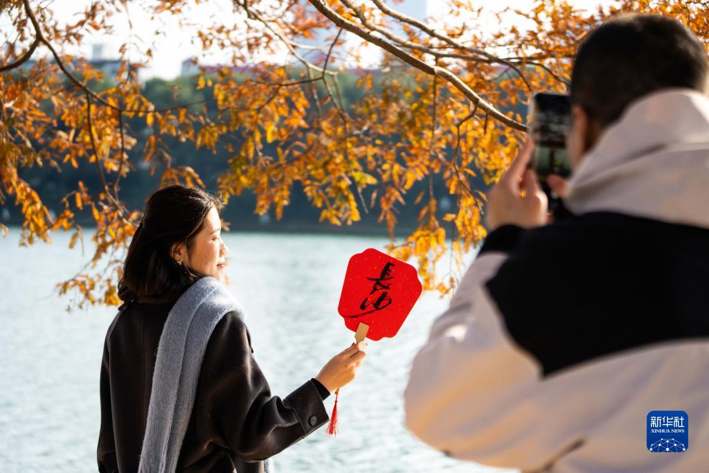 12月1日,市民在長沙市烈士公園游玩拍照。