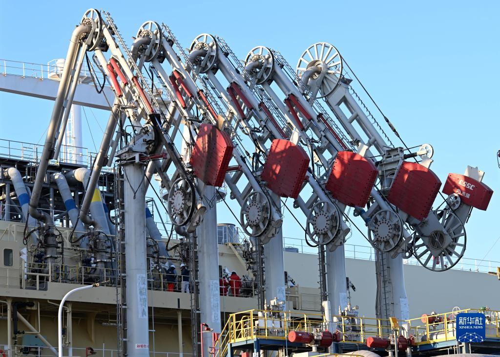12月1日,“少林”號LNG運輸船靠泊在中國石化天津LNG接收站2號泊位進行卸船作業。