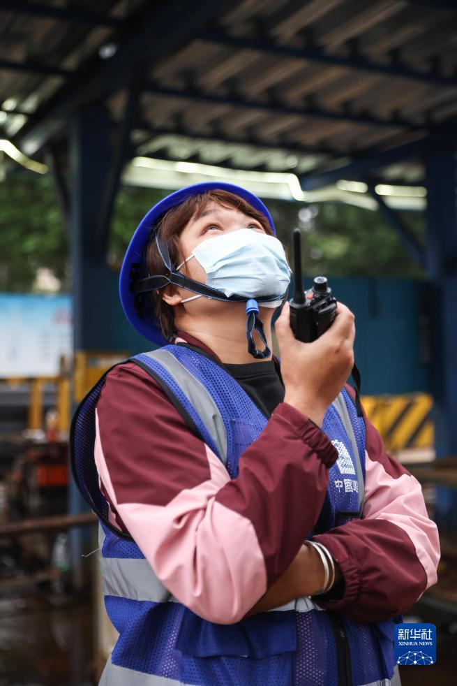 12月1日,工人在海口市海南中心項目指揮塔吊車。