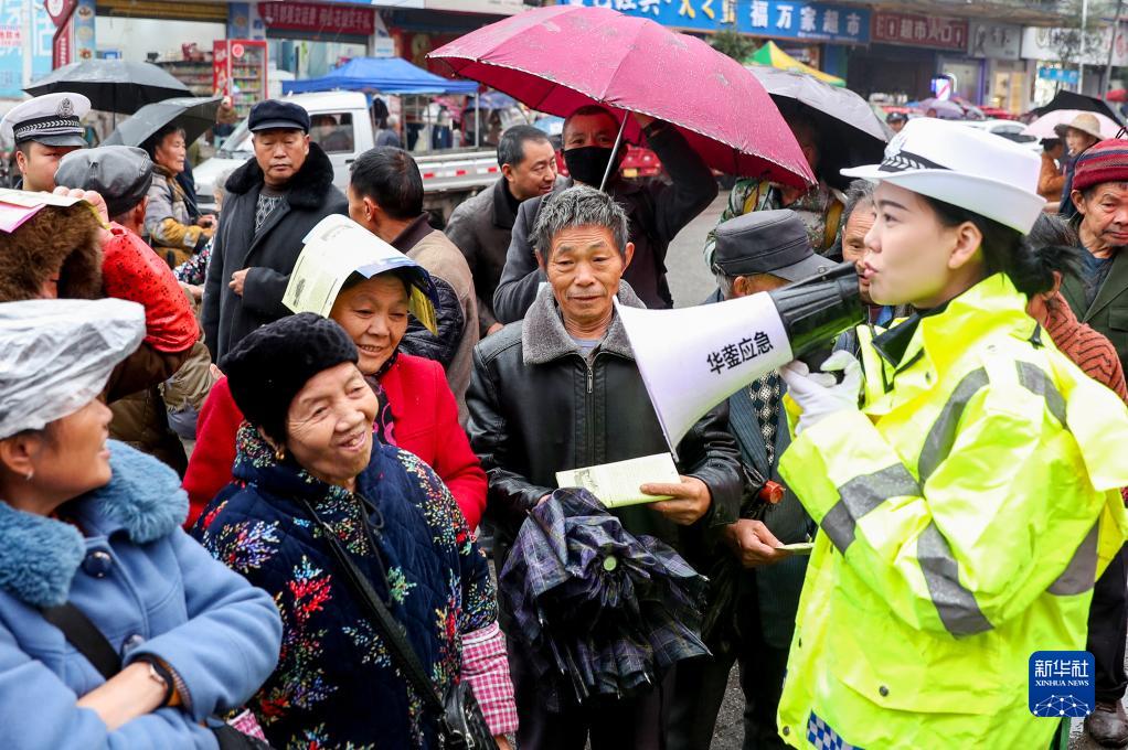 12月1日,宣講小分隊成員在四川省華鎣市高興鎮向趕場的群眾宣講交通安全知識。