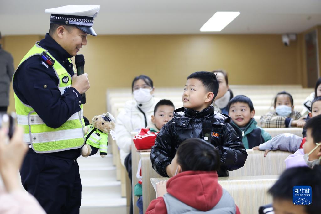 12月1日,安徽省合肥市交警支隊蜀山大隊走進蜀鑫路小學,通過互動問答宣傳交通安全知識。