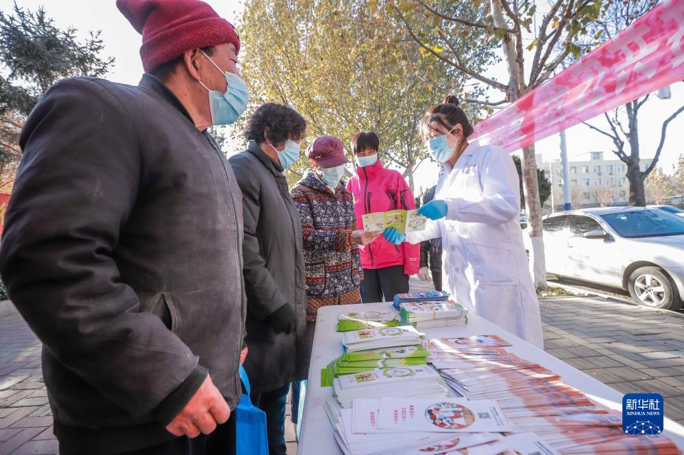 12月1日,河北省遵化市疾控中心的工作人員為市民講解艾滋病預防知識。