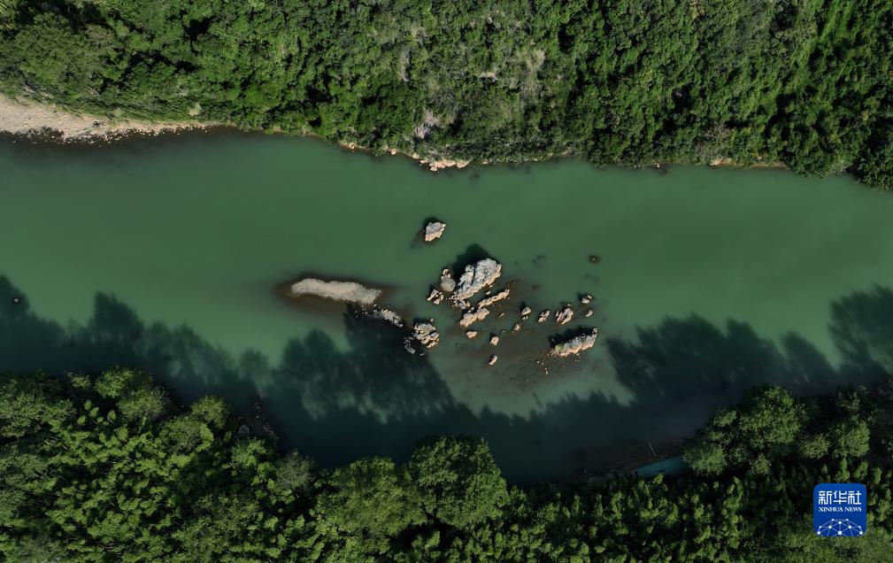 這是位於福州市永泰縣嵩口鎮的大樟溪自然生態環境,中華秋沙鴨連續15次來這裡越冬(11月29日攝,無人機照片)。
