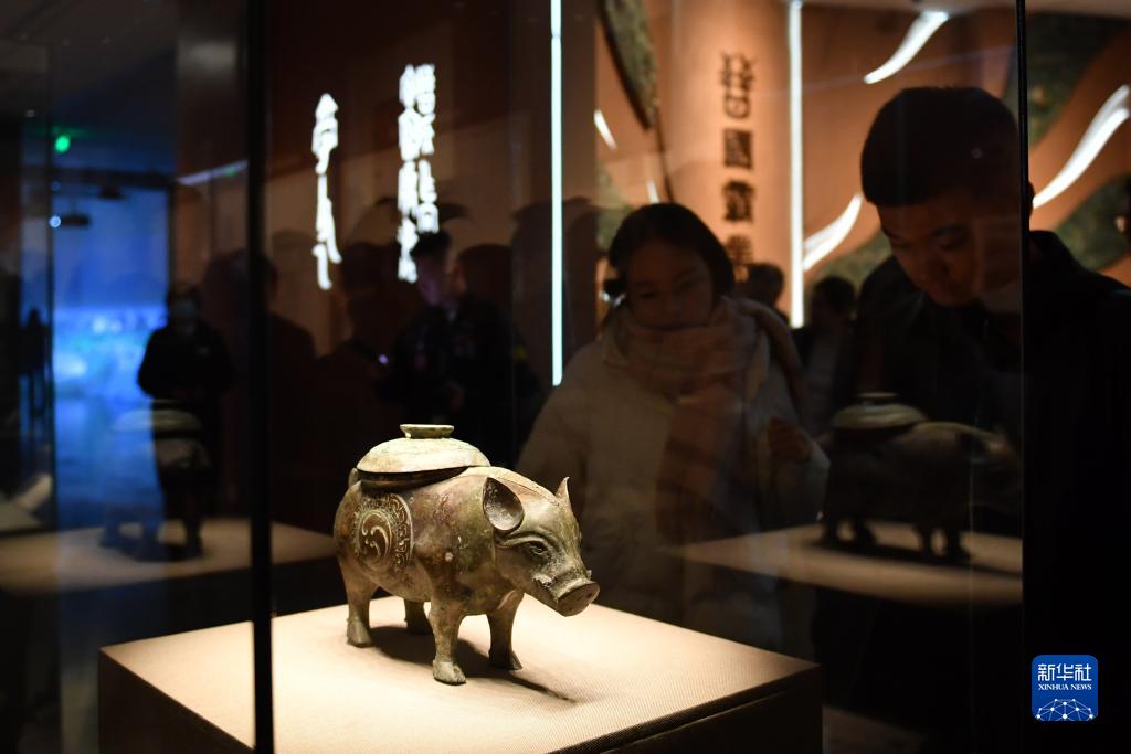 12月1日,觀眾在長沙博物館“晉國霸業——山西出土兩周文物精華展”參觀展品豬尊。