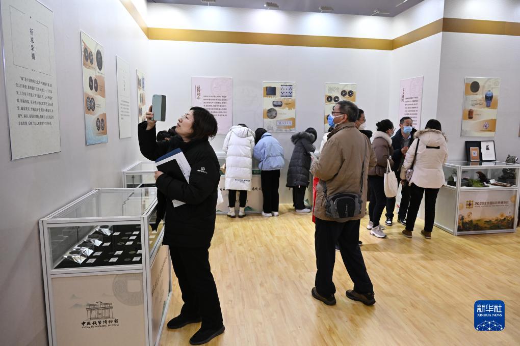 12月1日,參觀者在中國錢幣博物館展區設置的“傳承與發展:花錢上的傳統文化”專題展上參觀拍攝。