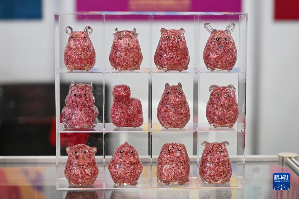 這是在博覽會上展示的北京印鈔有限公司用鈔渣製作的十二生肖文創紀念品(12月1日攝)。