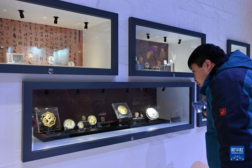 12月1日,參觀者在中國金幣集團有限公司展&觀看2024中國甲辰(龍)年貴金屬紀念幣。