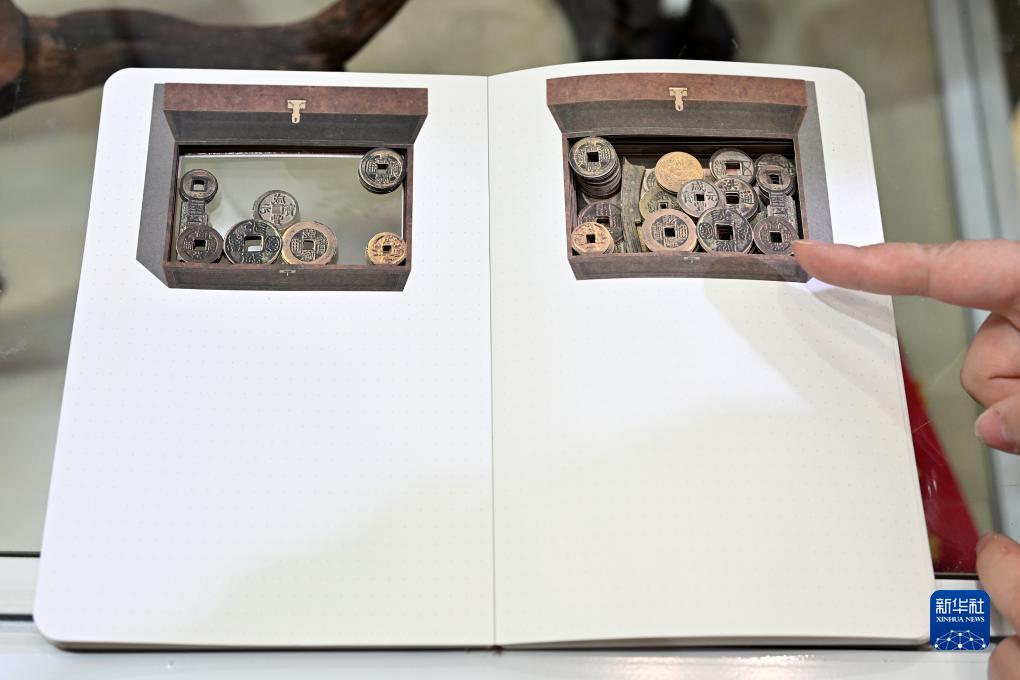 這是中國錢幣博物館展區內展示的一款基於中國古錢幣設計的文創筆記本(12月1日攝)。