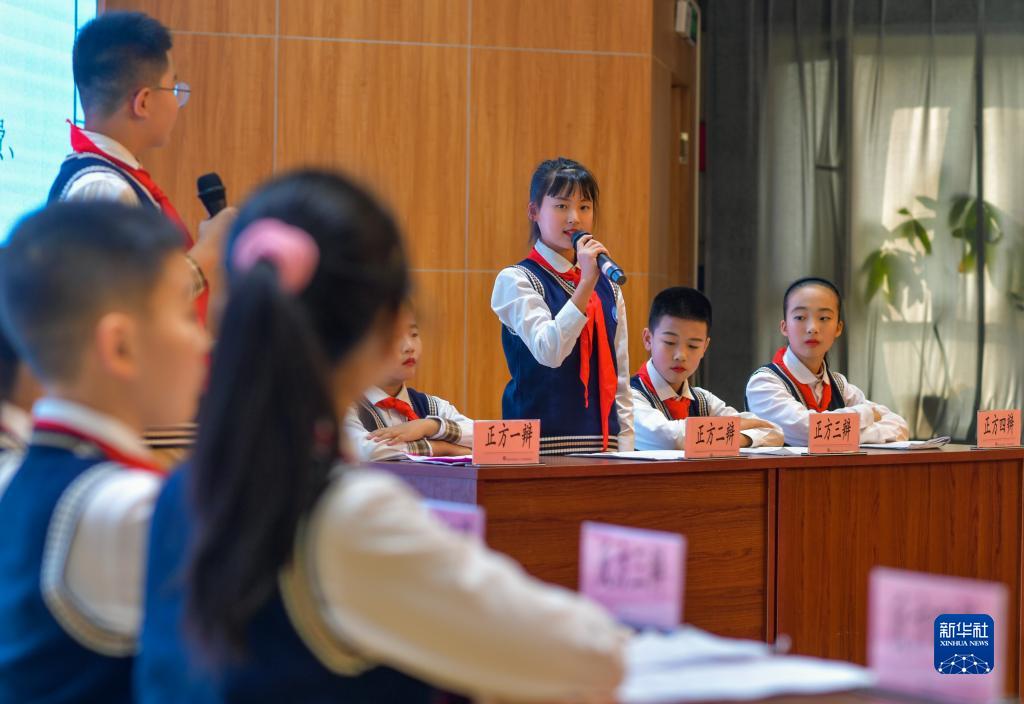 12月1日,在烏魯木齊市第十三小學教育集團成員校第八十八小學,學生在法治辯論賽中辯論。