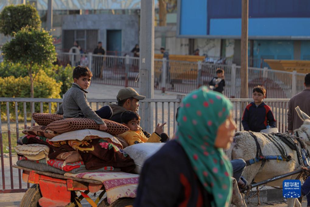 12月1日,在加沙地帶南部城市汗尤尼斯,人們逃離家園。