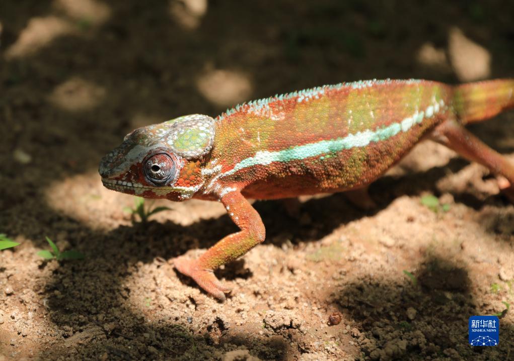 這是11月27日在馬達加斯加馬羅澤沃村蝴蝶谷拍攝的變色龍。
