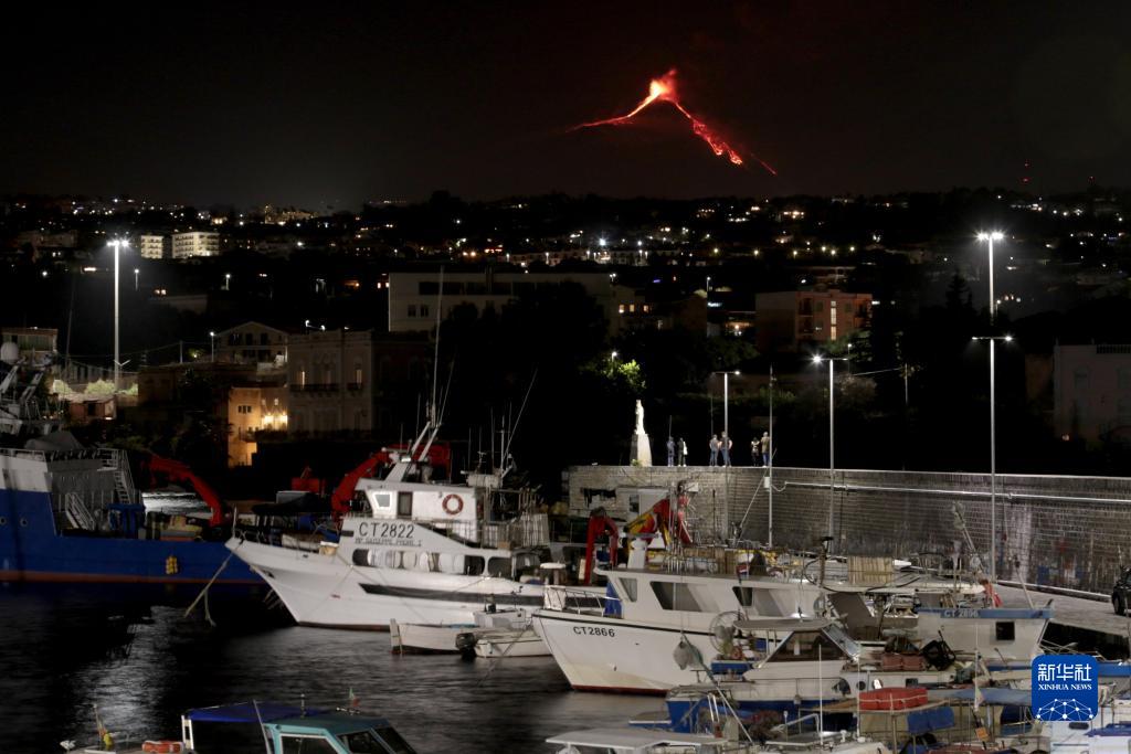 這是12月1日在意大利西西裏島卡塔尼亞拍攝的噴發中的埃特納火山。